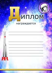 Дипломы можно вручать ученикам, учителям или кому-либо еще за участие в мероприятиях, приуроченных празднованию Дня космонавтики.