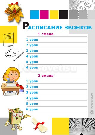 - Расписание звонков.