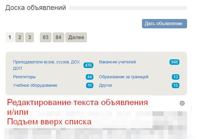 Покупая эту услугу, вы можете заказать однократное редактирование собственного объявления или его поднятие в верхнюю часть списка всех объявлений.