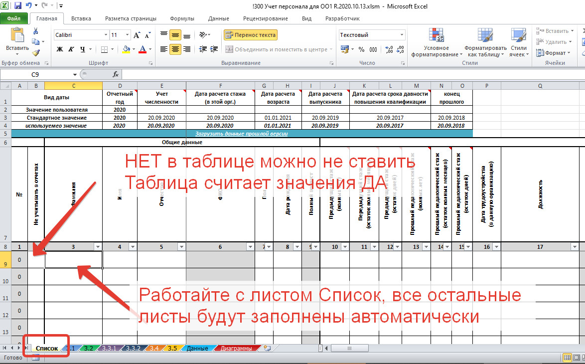 Вопрос: Данные внесли, а автоматически закладки не работают. Не считаются сотрудники ни по одному параметру.