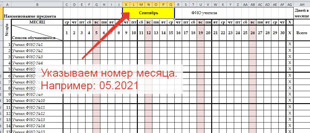 - Список класса вписываете только один раз, далее он автоматически переносится на любой месяц.