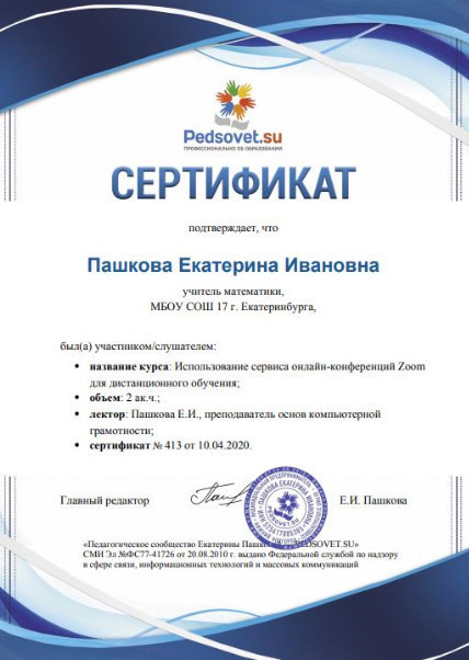 Сертификат участника вебинара от СМИ образовательного характера Свидетельство о регистрации СМИ: Эл №ФС77-41726 от 20.08.2010 г.