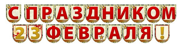 Растяжка представляет собой надпись "С ПРАЗДНИКОМ 23 ФЕВРАЛЯ!".