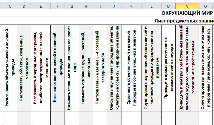 Таблица позволяет учителю вести учет сформированности предметных умений по окружающему миру во 2 классе и видеть общую картину по классу.