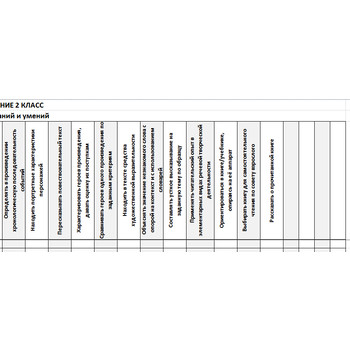 ША Таблица-анализатор Лист Учёта предметных умений ЛИТЕРАТУРНОЕ ЧТЕНИЕ 2 класс