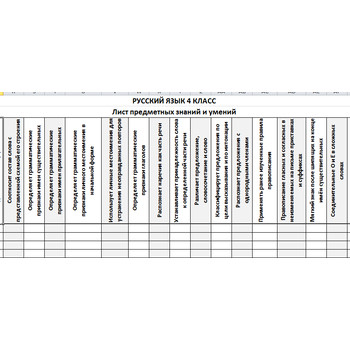 ША Таблица-анализатор Лист Учёта предметных умений РУССКИЙ ЯЗЫК 4 класс