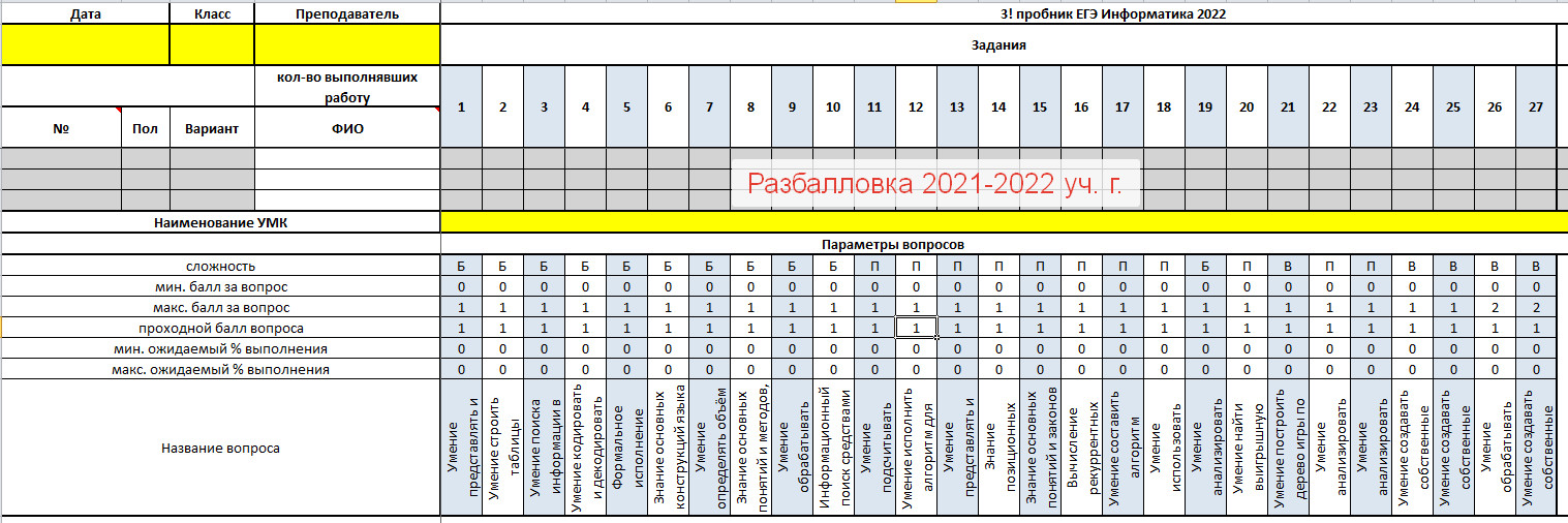 Шаблон-анализатор позволяет учителю проанализировать результаты пробного и официального ЕГЭ, проводимого в учебном году, распечатать отчет по классу/параллели/школе и отдельному ученику.