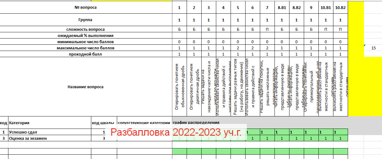 - цветовые маркеры наиболее важных данных (самые сложные вопросы, ученики, не набравшие порог);