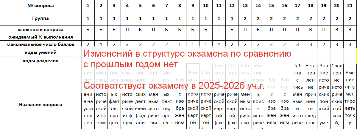 27.01.2026 Изменения таблицы ЕГЭ по истории 2024-2025 учебного года