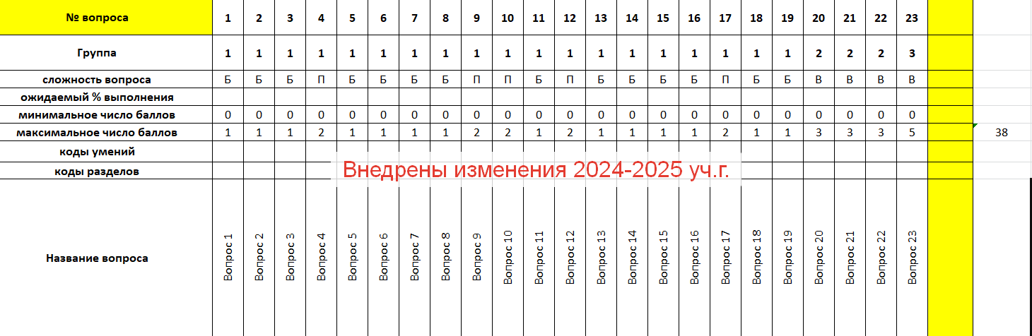 - Внесены изменения: убрано задание №24; общее количество баллов изменено с 40 до 38 баллов; в задании №21 изменен балл.