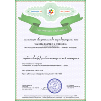 Получение свидетельства о публикации на страницах сайта Педсовет.су (1 - 2 раб. дня)