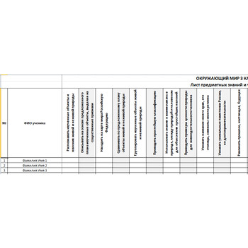 ША Таблица-анализатор Лист Учёта предметных умений ОКРУЖАЮЩИЙ МИР 3 класс