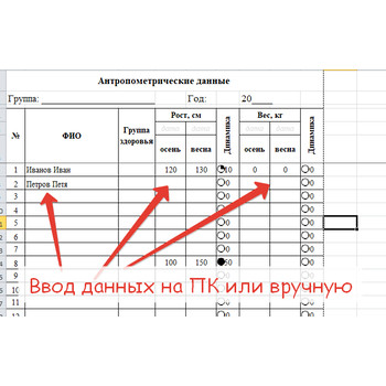 Стандартный бланк для записи результатов роста и веса детей в группе в начале и в конце года. Бланк можно распечатать и заполнять вручную или заносить данные в таблицу и получить автоматизированный отчет. В помощь воспитателю и медицинскому работнику Д...